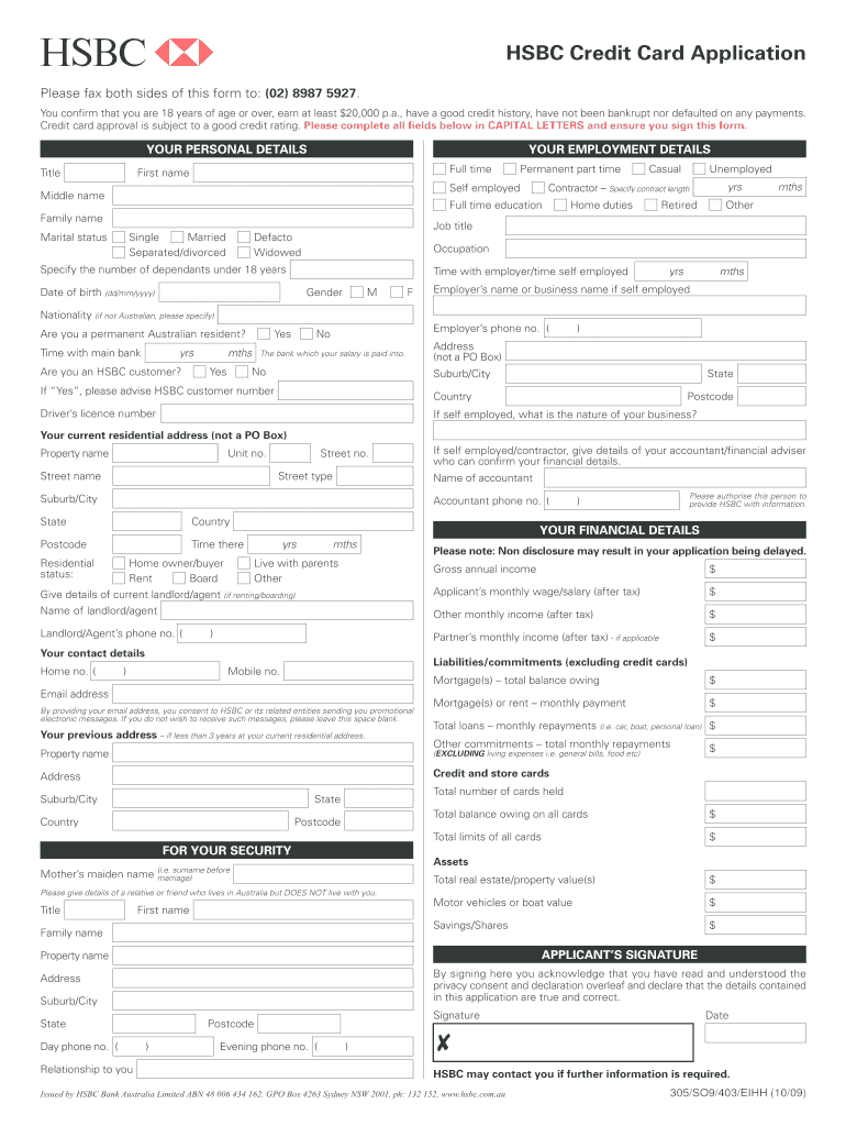 The HSBC Credit Card Application is a financial document used by individuals in Australia to apply for an HSBC credit card.