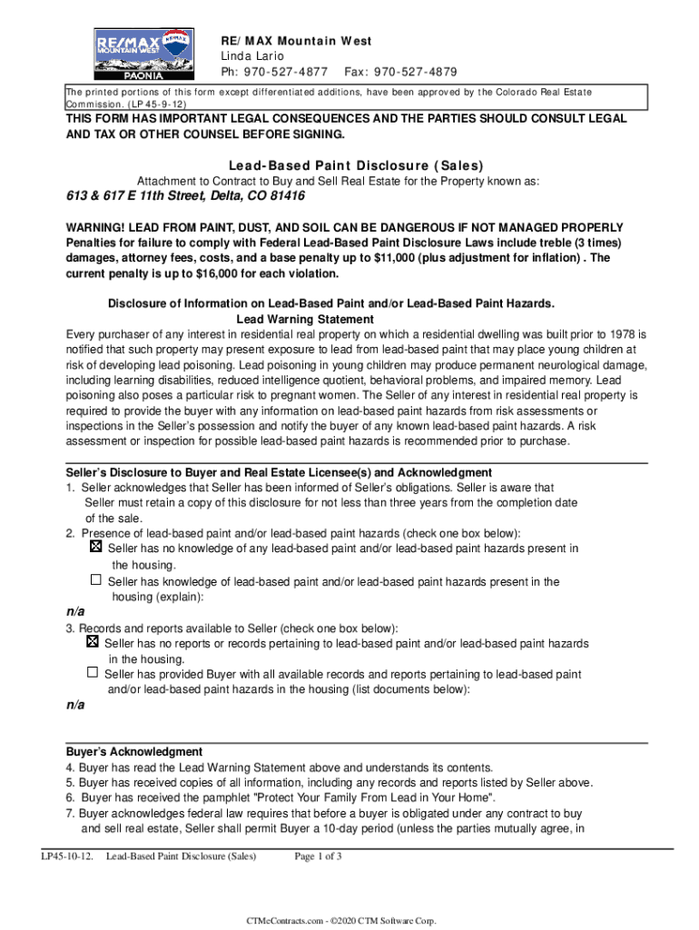 RE/MAX Mountain West Linda Mario pH: 9705274877 Fax: 9705274879 The printed portions of this form except differentiated additions, have been approved by the Colorado Real Estate Commission. (LP 45912)THIS