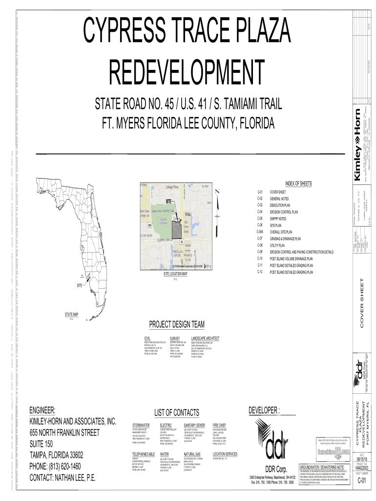 CYPRESS TRACE PLAZA REDEVELOPMENT STATE ROAD NO. 45 / U.S. 41 / S. TAMIAMI TRAIL FT. MYERS FLORIDA LEE COUNTY, FLORIDAINDEX OF SHEETS C01 C02GENERAL NOTESC03DEMOLITION PLANC04EROSION CONTROL PLANC05SWPPP