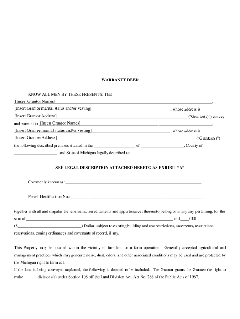 WARRANTY DEED KNOW ALL MEN BY THESE PRESENTS: That Insert Granter Names, Insert Granter marital status and/or vesting, whose address is Insert Granter Address (Granter(s)) convey Insert Grantee Names