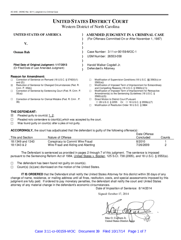 Get the free Online AO 245C (WDNC Rev. 02/11) Judgment in a ...