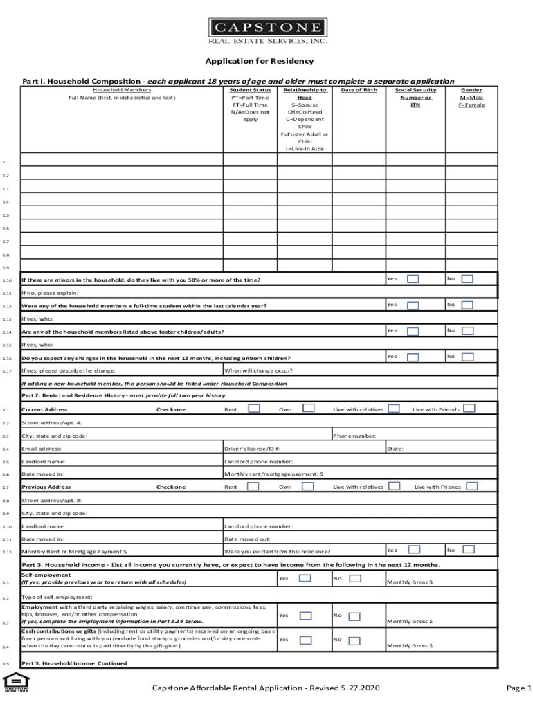 Application for Residency Part I. Household Composition each applicant 18 years of age and older must complete a separate application Student Status PTP art Time Full Time N/Does not applyHousehold