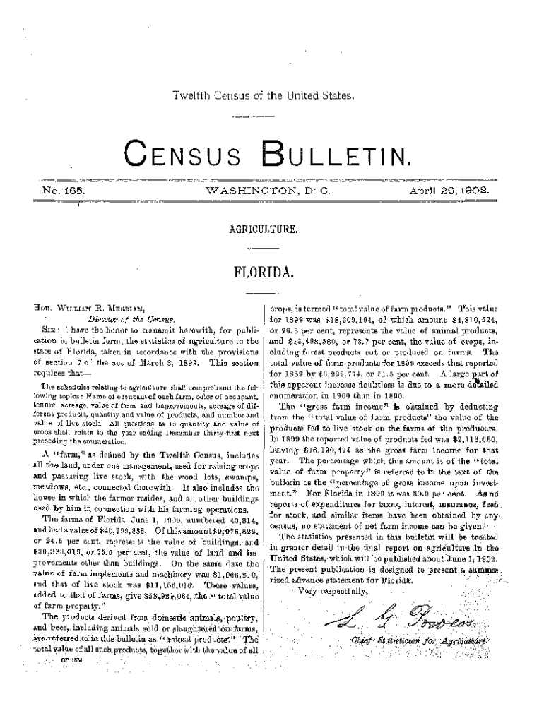 Get the free Bulletin 165. Agriculture. Florida.. Census Bulletins - www2 census
