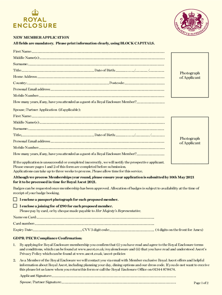 NEW MEMBER APPLICATION All fields are mandatory. Please print information clearly, using BLOCK CAPITALS. First Name:Middle Name(s):Surname:Title:Date of Birth:Home Address://Photographof Applicant