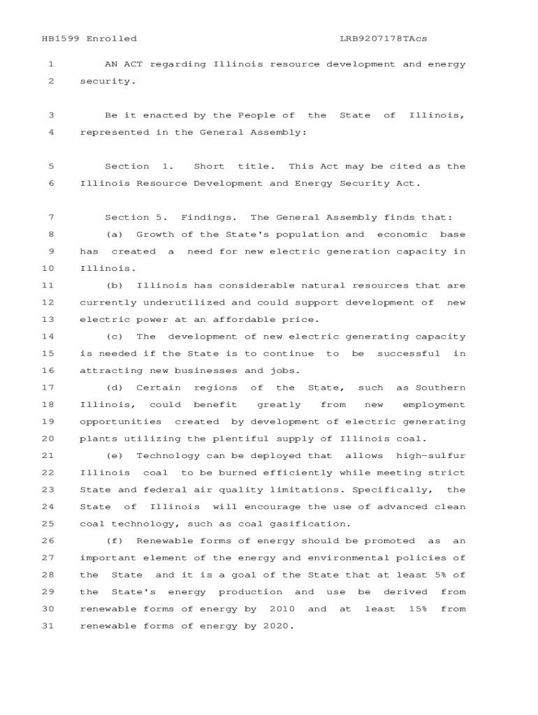 HB1599 Enrolled 1 2AN ACT regarding Illinois resource development and energy security.3 4Be it enacted by the People ofSection1. Section 5.8(a)10StateofIllinois,Short title. This Act may be cited