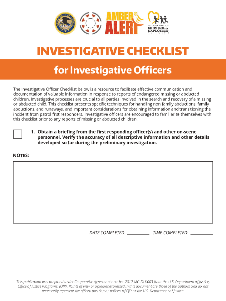 INVESTIGATIVE CHECKLIST for Patrol First Responders for Investigative Officers The Patrol First Responder Checklist below provides information to enable accurate and appropriate Investigative Officer