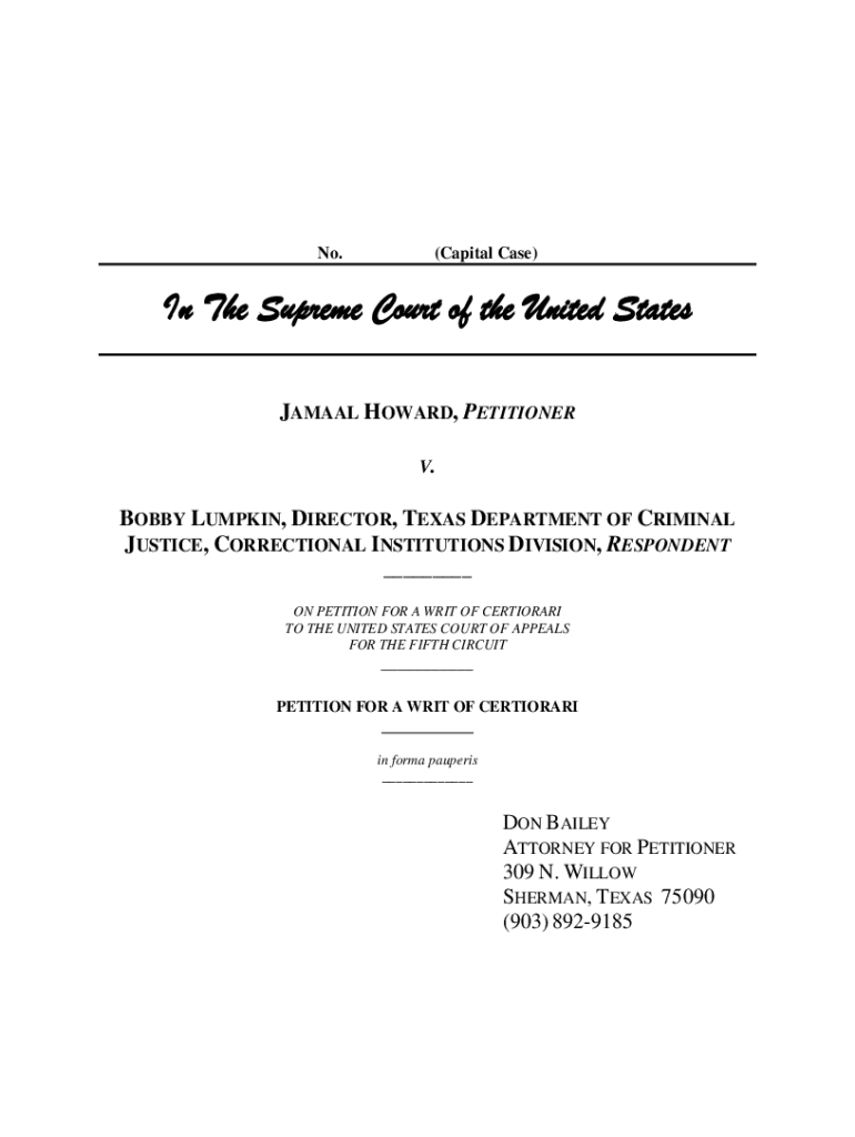 No.(Capital Case)In The Supreme Court of the United States JAMAAL HOWARD, PETITIONER V.BOBBY LUMPKIN, DIRECTOR, TEXAS DEPARTMENT OF CRIMINAL JUSTICE, CORRECTIONAL INSTITUTIONS DIVISION, RESPONDENT