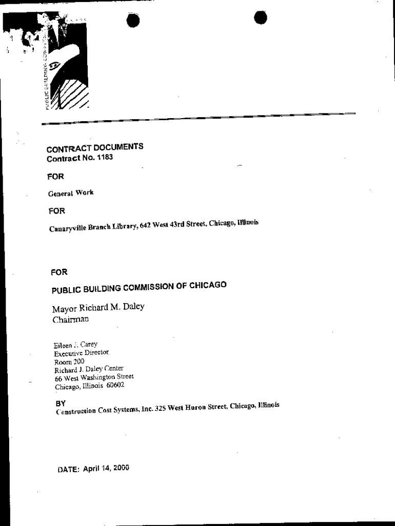 CONTRACT DOCUMENTS Contract No. 1183 FOR General Worker Centreville Branch Library, 642 West 43rd Street, Chicago, Illinois PUBLIC BUILDING COMMISSION OF CHICAGOMayor Richard M. Daley Chairman Eileen