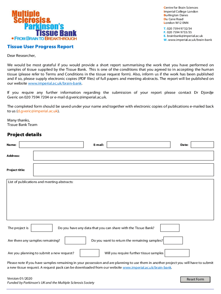 Get the free UK MS Tissue Bank tissue request form - Imperial College ...