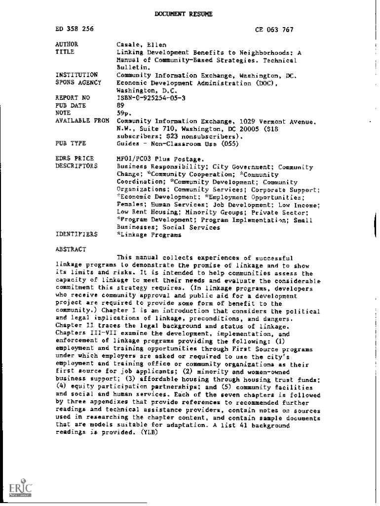 Get the free Linking Development Benefits to Neighborhoods: A Manual of ...