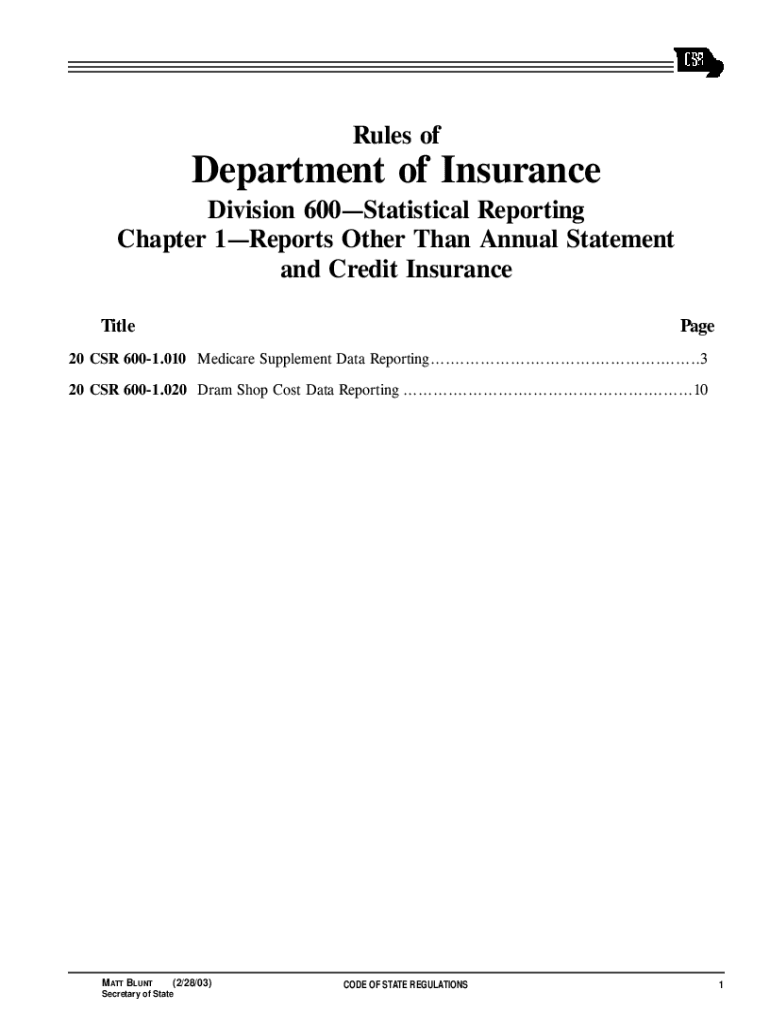 Rules department of Insurance Division 600Statistical Reporting Chapter 1Reports Other Than Annual Statement and Credit Insurance TitlePage20 CSR 6001.010 Medicare Supplement Data Reporting......................................................3