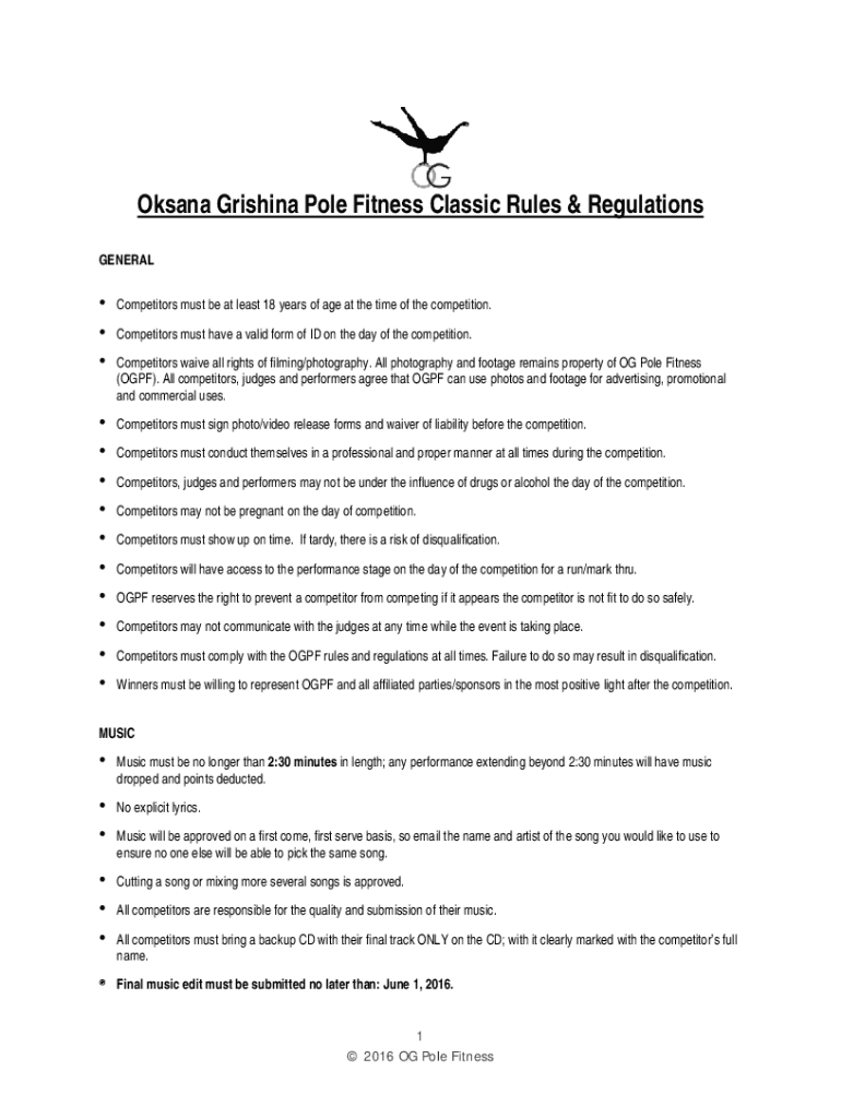 Get the free Oksana Grishina Pole Fitness Classic Rules & Regulations