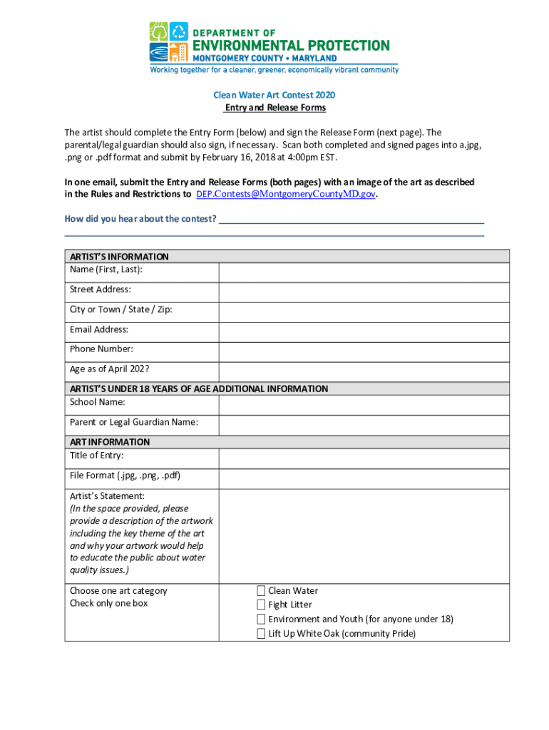 Get the free Clean Water Art Contest 20 20 Entry and Release Forms