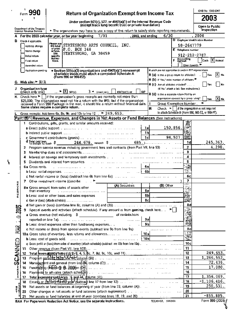 I Form 990 “A organization may have to use a copy of this return to satisfy state reporting requirements. For the 2003 calendar ear, Check it applicable. Plea Address change be or .type. Name change