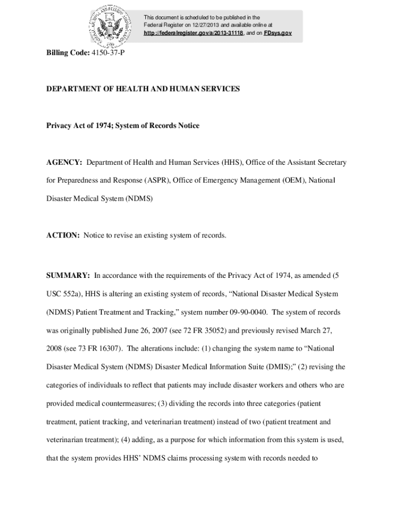 This document is scheduled to be published in the Federal Register on 12/27/2013 and available online at http://federalregister.gov/a/201331118, and on Days. Billing Code: 415037PDEPARTMENT OF HEALTH