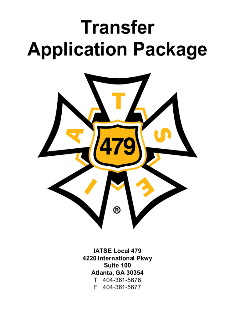 Transfer Application PackageIATSE Local 479 4220 International Pkwy Suite 100 Atlanta, GA 30354 T 4043615676 F 4043615677IATSE Local 479 TRANSFER APPLICATION PACKAGE Indexing ......................................................................................................................................