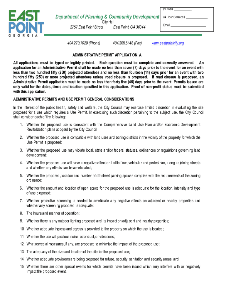 Get the free Administrative Permit Application - East Point, Georgia