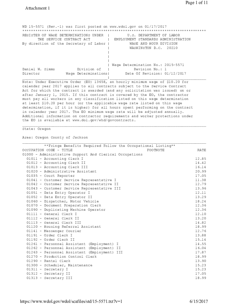 Attachment 1Page 1 of 11WD 155571 (Rev.1) was first posted on www.wdol.gov on 01/17/2017 ************************************************************************************ REGISTER OF WAGE DETERMINATIONS