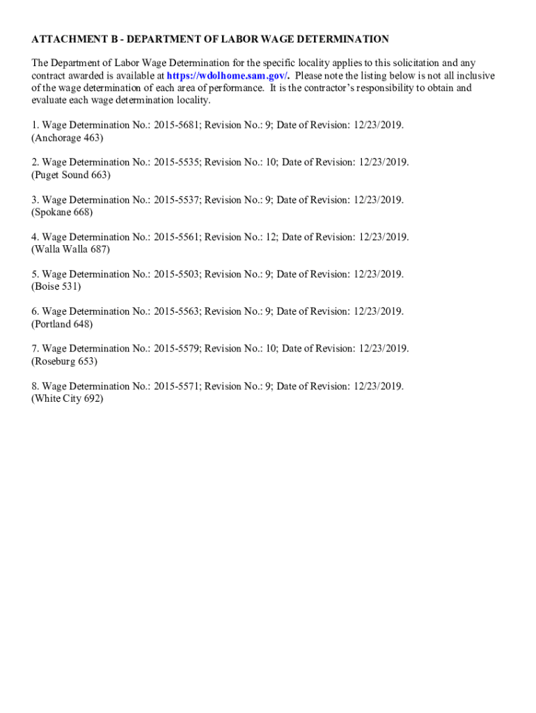 ATTACHMENT B DEPARTMENT OF LABOR WAGE DETERMINATION The Department of Labor Wage Determination for the specific locality applies to this solicitation and any contract awarded is available at https://wdolhome.sam.gov/.