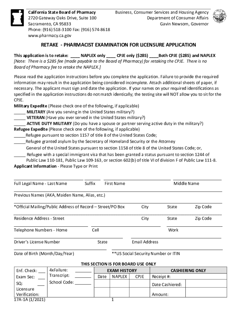 California State Board of Pharmacy 2720 Gateway Oaks Drive, Suite 100 Sacramento CA 95833 Phone: (916) 5183100 Fax: (916) 5748618 www.pharmacy.ca.govBusiness, Consumer Services and Housing Agency