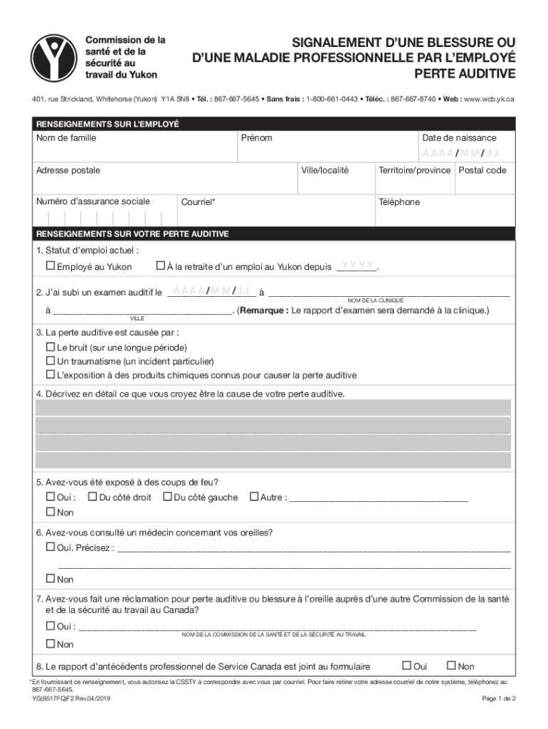 SIGNALMEN DUNE BLESS URE OF DUNE MALADIES PROFESSIONALLY PAR EMPLOY PERTH AUDITIVE 401, rue Strickland, Whitehorse (Yukon) Y1A 5N8 Tl. 8676675645 Sans fries : 18006610443 TLC. 8676678740 Web : www.wcb.yk.caRENSEIGNEMENTS