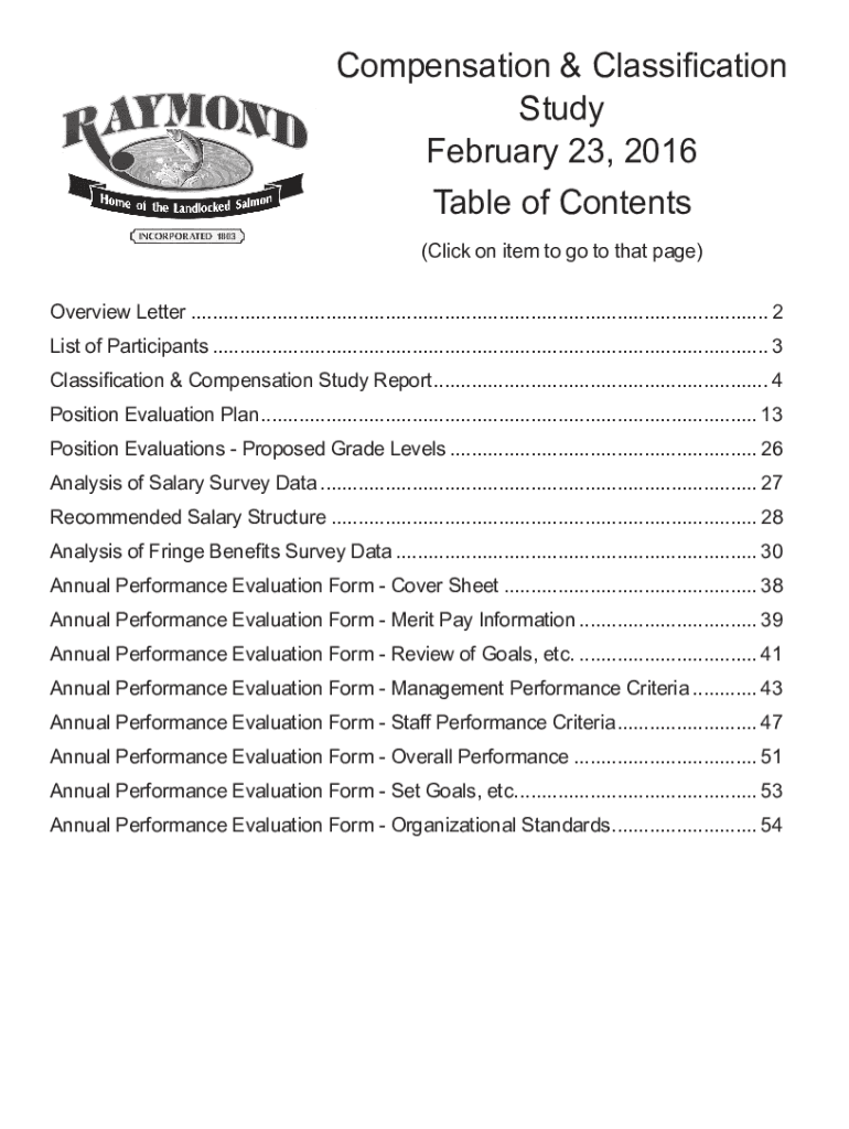 Compensation & Classification Study February 23, 2016, Table of Contents (Click on item to go to that page) Overview Letter............................................................................................................