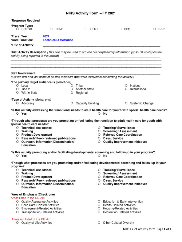 Get the free NIRS Activity Form FY 2021 - AUCD