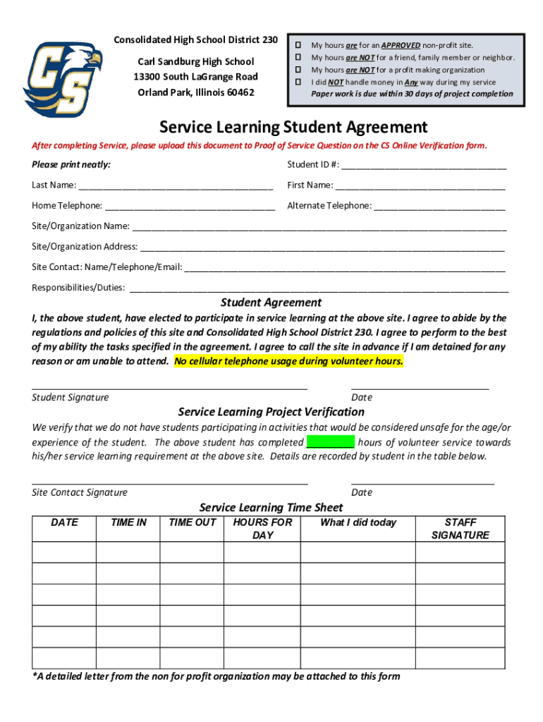 Consolidated High School District 230My hours are for an APPROVED nonprofit site. My hours are NOT for a friend, family member or neighbor. My hours are NOT for a profit making organization I did