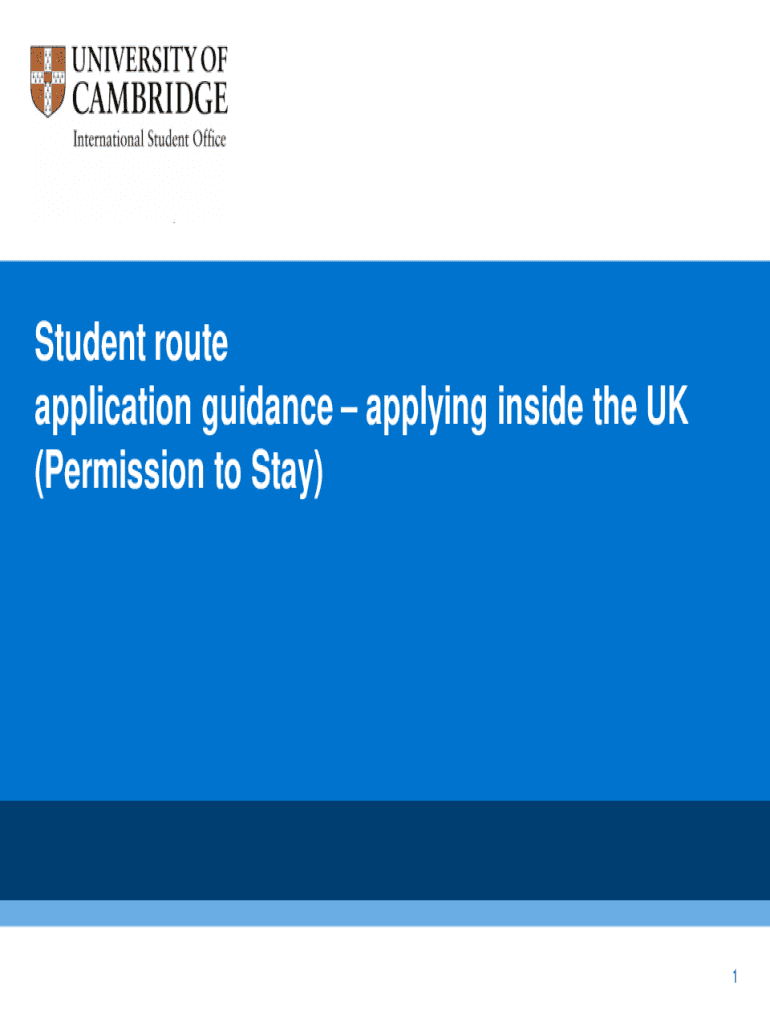 Student route application guidance applying inside the UK (Permission to Stay)1Student route: permission to stay applications document is intended to provide guidance to University of Cambridge students