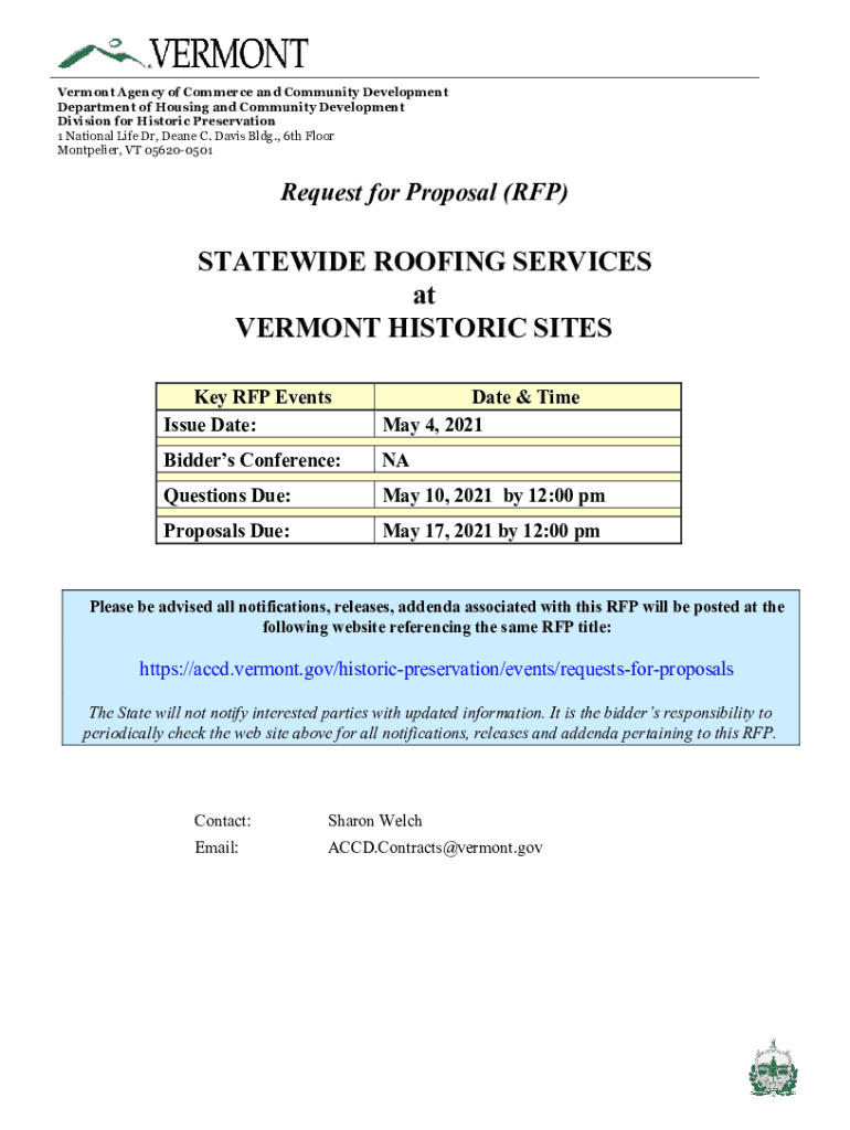 Vermont Agency of Commerce and Community Development Department of Housing and Community Development Division for Historic Preservation 1 National Life Dr, Dean C. Davis Bldg., 6th Floor Montpelier,