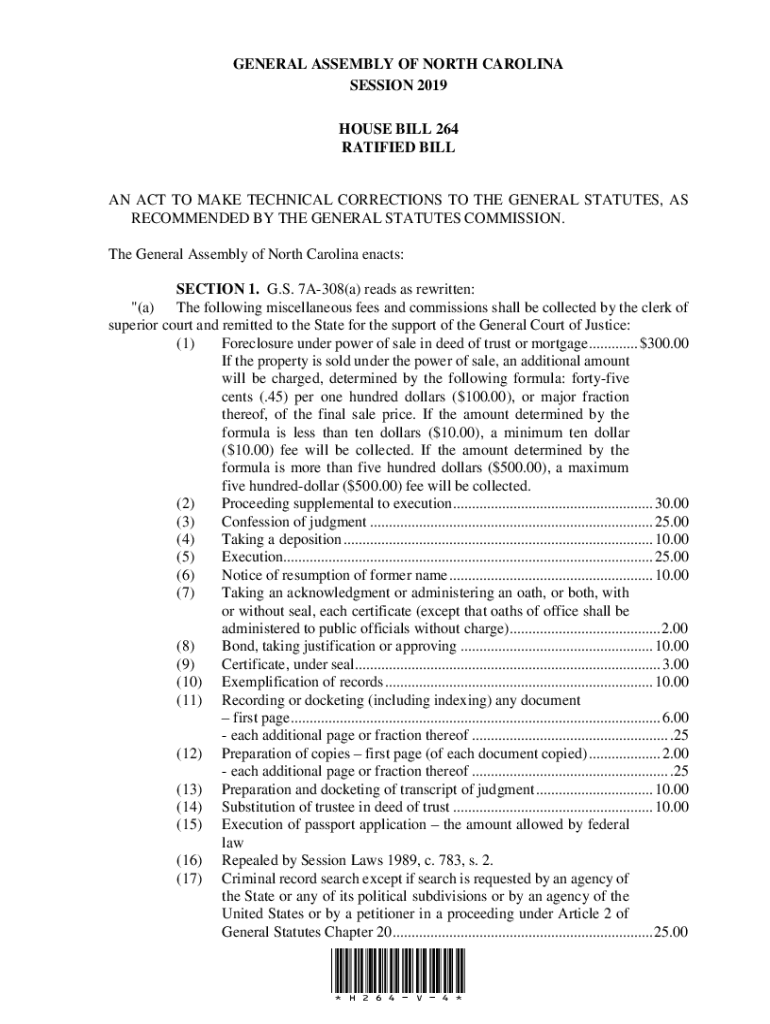 GENERAL ASSEMBLY OF NORTH CAROLINA SESSION 2019 HOUSE BILL 264 RATIFIED BIL LAN ACT TO MAKE TECHNICAL CORRECTIONS TO THE GENERAL STATUTES, AS RECOMMENDED BY THE GENERAL STATUTES COMMISSION. The General