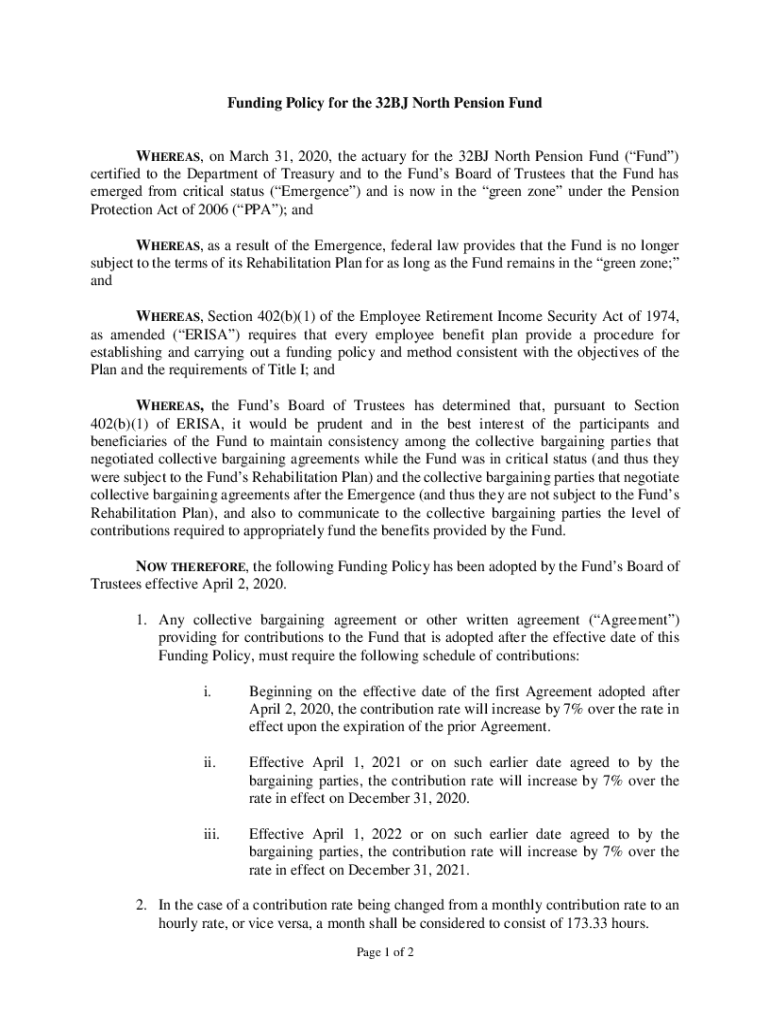 Get the free Funding Policy for the 32BJ North Pension Fund WHEREAS