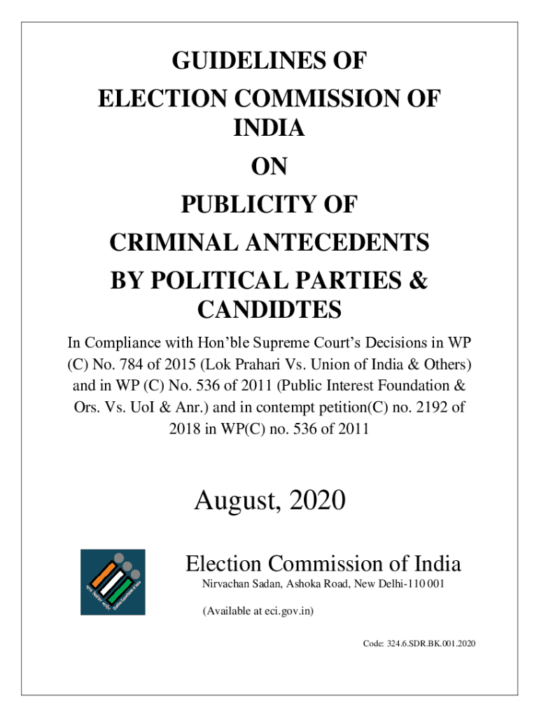 GUIDELINES OF ELECTION COMMISSION OF INDIA ON PUBLICITY OF CRIMINAL ANTECEDENTS BY POLITICAL PARTIES & CANDIDATES In Compliance with Hobble Supreme Courts Decisions in WP © No. 784 of 2015 (OK Primary