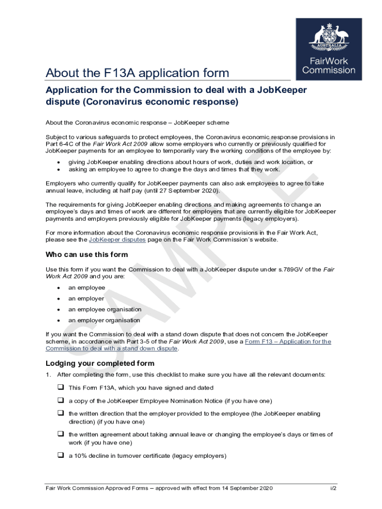About the F13A application form Application for the Commission to deal with a Zookeeper dispute (Coronavirus economic response) About the Coronavirus economic response Zookeeper scheme Subject to
