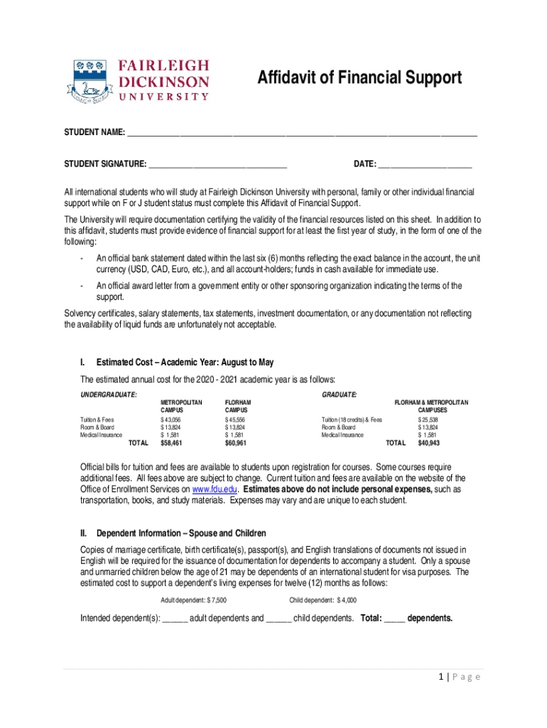 Get the free FDU Affidavit of Financial Support