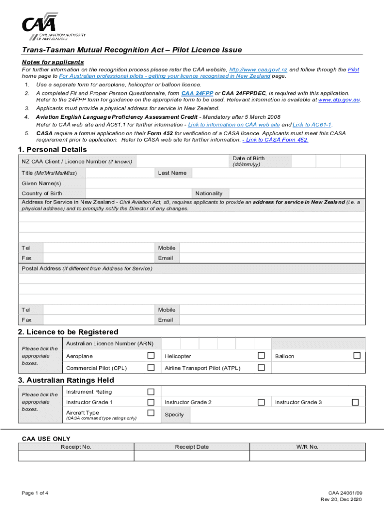 TransTasman Mutual Recognition Act Pilot License Issue Notes for applicants further information on the recognition process please refer the CAA website, http://www.caa.govt.nz and follow through the