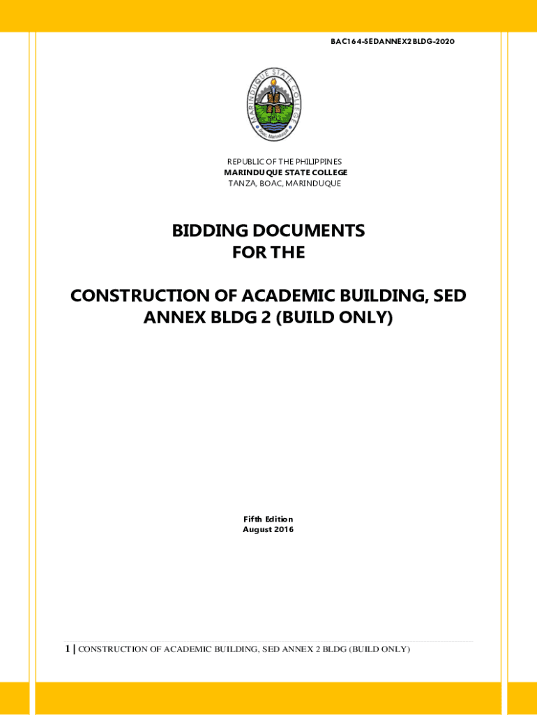 BAC164SEDANNEX2BLDG2020REPUBLIC OF THE PHILIPPINES MARTINIQUE STATE COLLEGE STANZA, BOAT, MARINDUQUEBIDDING DOCUMENTS FOR THE CONSTRUCTION OF ACADEMIC BUILDING, USED ANNEX BLDG 2 (BUILD ONLY)Fifth