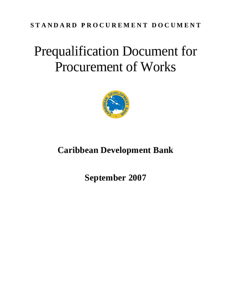 What is This Standard Procurement Document "Prequalification Document for Procurement of Works has been prepared by the Caribbean Development Bank (CDB) and is based on the Master Procurement Document "Prequalification Document for Procurement of W Form?