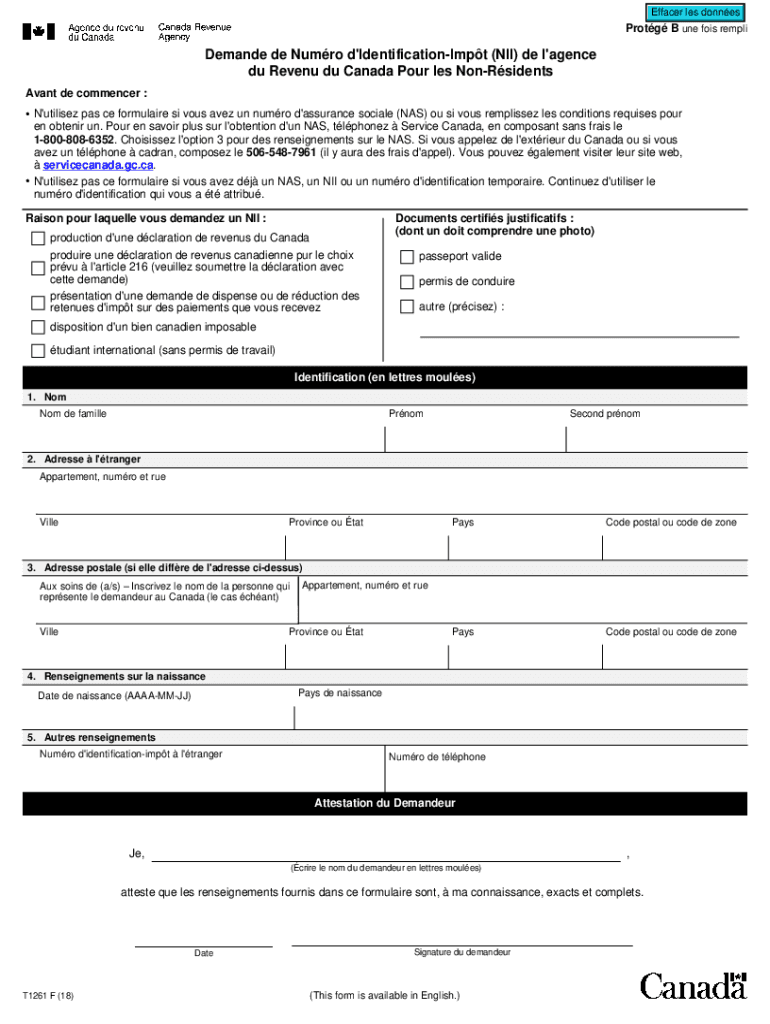 Effaced LES donnesProtg B one foil rempliDemande de Humor d\'IdentificationImpt (WII) de l\'agency Du Revenue du Canada Pour LES Nonresidents Savant DE commenced : N\'utilize pas CE formula ire is