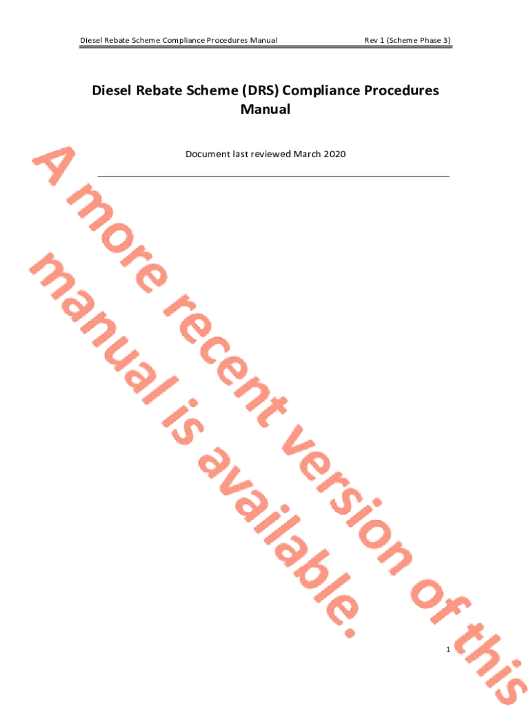 Diesel Rebate Scheme Compliance Procedures Manual Rev 1 (Scheme Phase 3)Diesel Rebate Scheme (DRS) Compliance Procedures Manual Document last reviewed March 2020 1Diesel Rebate Scheme Compliance Procedures