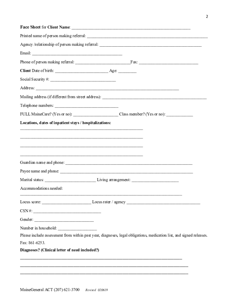 Information such as personal details, insurance information, medical history, and reason for seeking treatment must be reported on admission criteria for Mainegeneral.
