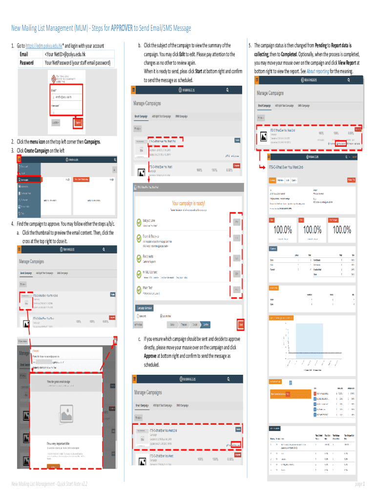 Get the free New Mailing List Management (MLM) - Steps for APPROVER to Send Email/SMS Message