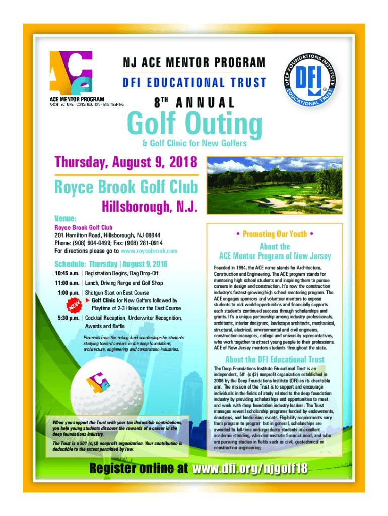 NJ ACE MENTOR PROGRAM DFI EDUCATIONAL TRUST8 TH A N N U A Golf Outing & Golf Clinic for New Golfers Thursday, August 9, 2018Royce Brook Golf Club Venue:Hillsborough, N.J. Royce Brook Golf Club 201