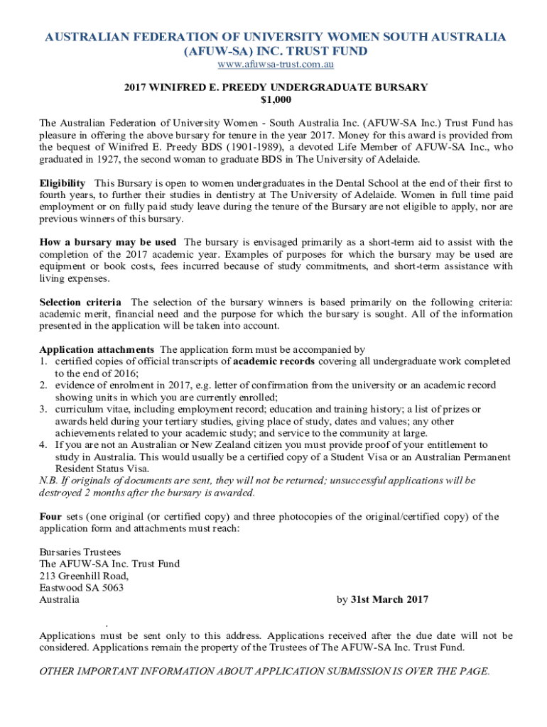 Get the free PREEDY UNDERGRADUATE BURSARY