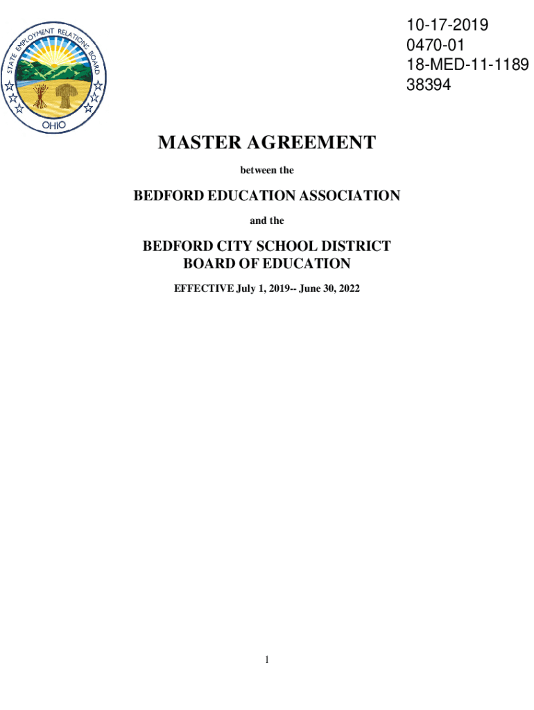 10172019 047001 18MED111189 38394MASTER AGREEMENT between therefore EDUCATION ASSOCIATION and therefore CITY SCHOOL DISTRICT BOARD OF EDUCATION EFFECTIVE July 1, 2019, June 30, 20221CERTIFICATE The