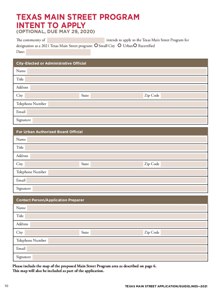 Information such as property owner details, property address, business type, and any planned renovations or improvements must be reported on Main Street City Cotulla.