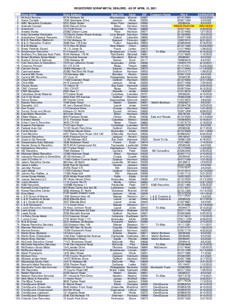 Get the free REGISTERED SCRAP METAL DEALERS - AS OF APRIL 12, 2021