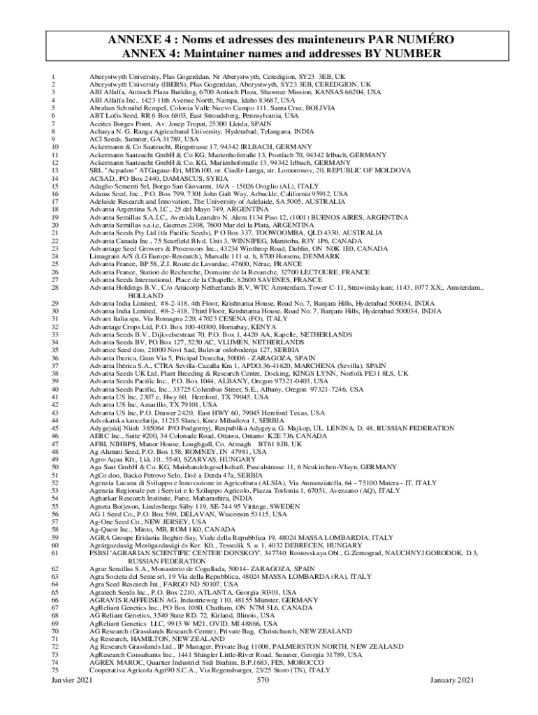 ANNEXED 4 : Norms eta dresses DES maintainers PAR NU MRO ANNEX 4: Maintainer names and addresses BY NUMBER 1 2 3 4 5 6 7 8 9 10 11 12 13 14 15 16 17 18 19 20 21 22 23 24 25 26 27 28 29 30 31 32 33