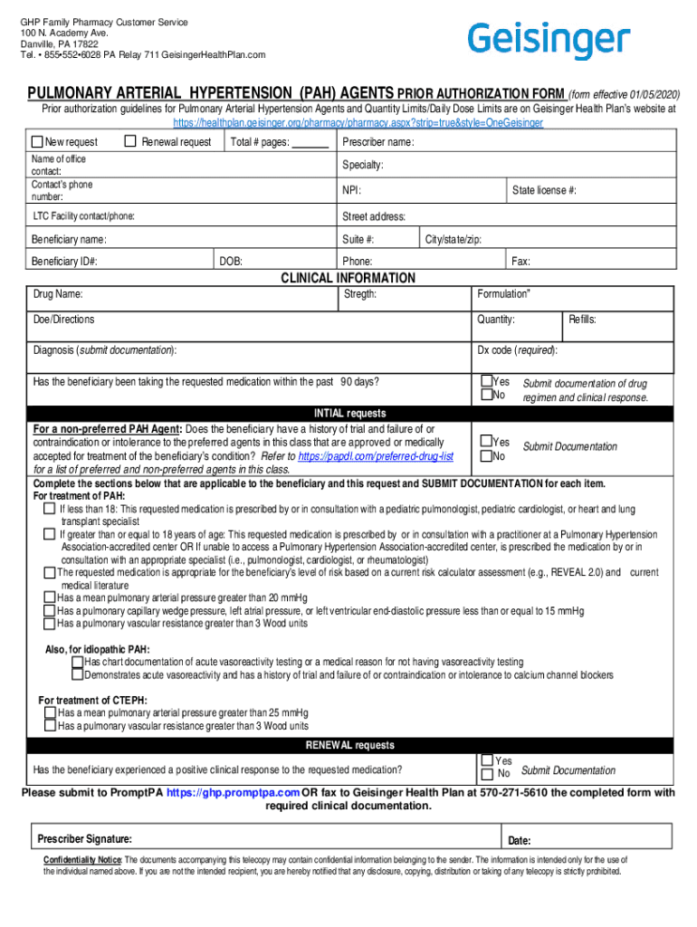 GAP Family Pharmacy Customer Service 100 N. Academy Ave. Danville, PA 17822 Tel. 8555526028 PA Relay 711 GeisingerHealthPlan. Compulsory ARTERIAL HYPERTENSION (PAH) AGENTS PRIOR AUTHORIZATION FORM