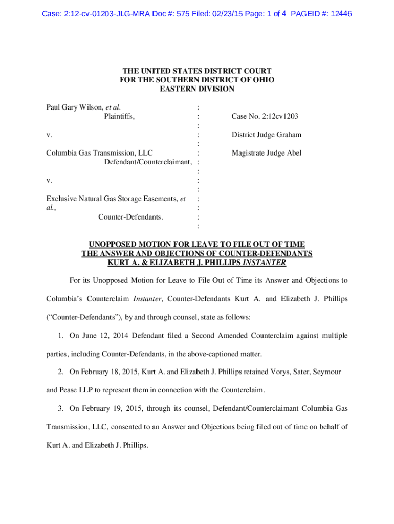 Case: 2:12cv01203JLGMRA Doc #: 575 Filed: 02/23/15 Page: 1 of 4 PAGED #: 12446THE UNITED STATES DISTRICT COURT FOR THE SOUTHERN DISTRICT OF OHIO EASTERN DIVISION Paul Gary Wilson, et al. Plaintiffs,